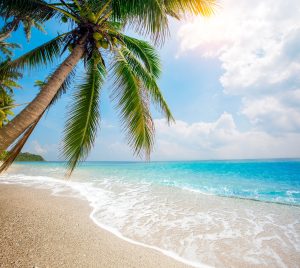 A gorgeous palm in a beach of the Caribe; the blue of the sea and the sky. And the light on top